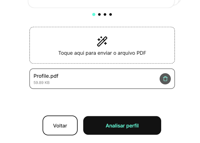 Na tela do Analista, envie seu arquivo e toque em “Analisar Perfil”.