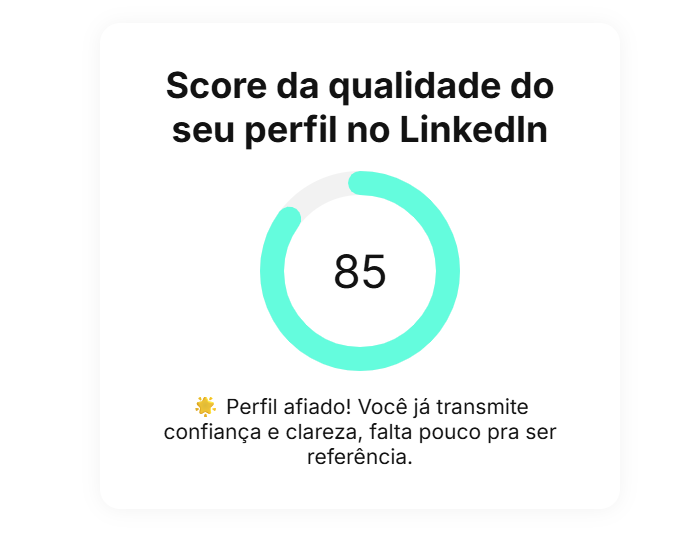 Em poucos segundos, o IQ te mostra um Score de qualidade do seu perfil e uma análise completa com:
