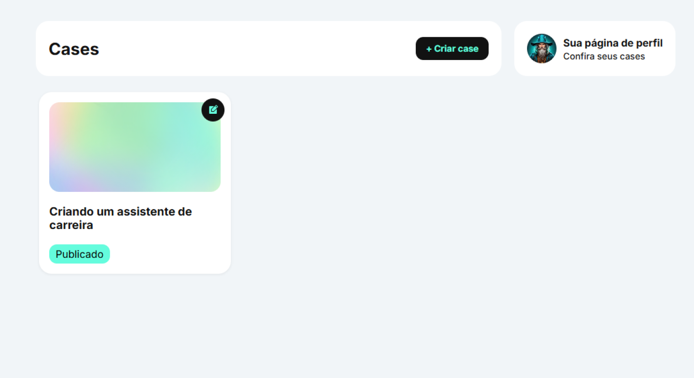 Vá em Meu Espaço → Cases para visualizar todos os cases que você já criou.