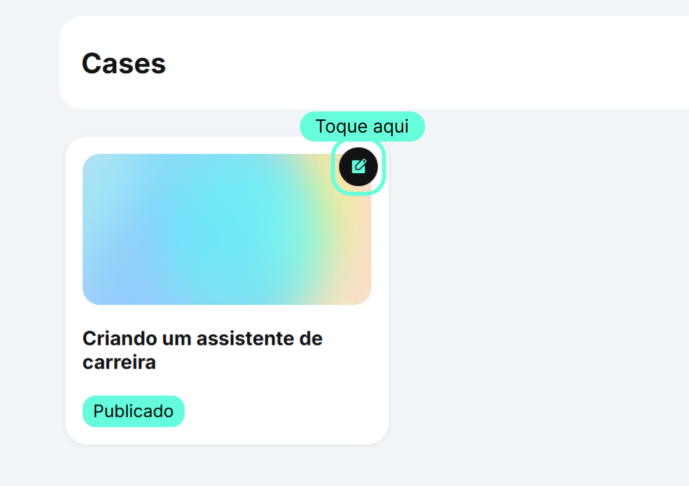 Após criar seus cases, você pode editar ou excluir qualquer um deles de forma simples e rápida.
