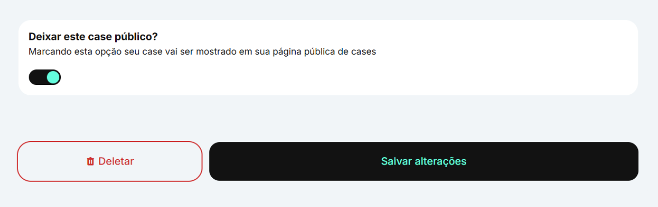 Após ajustar tudo, toque em “Salvar”. Seu case será atualizado instantaneamente na sua página pública (caso esteja como Público).