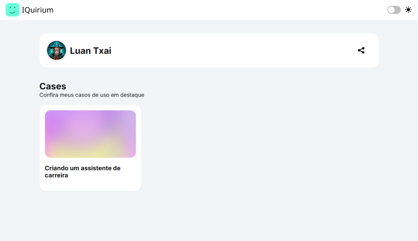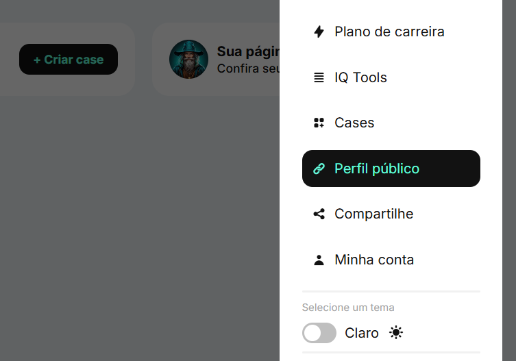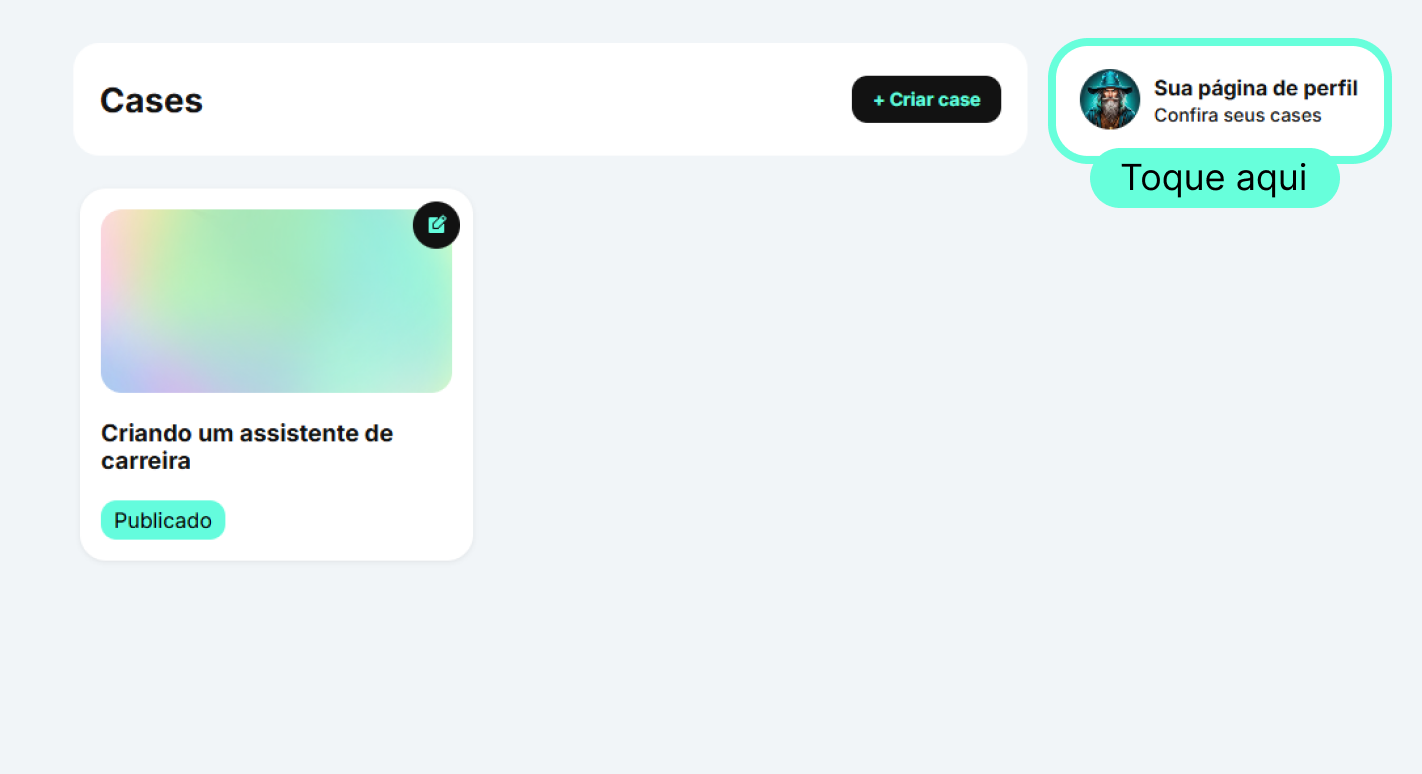Sua página pública de cases é o seu portfólio profissional aberto ao mundo, o lugar onde outras pessoas podem visualizar os seus cases publicados, conhecer seus projetos e reagir às suas conquistas.